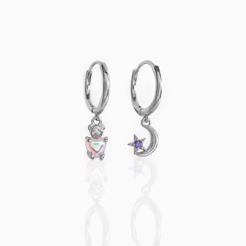 Type: Hoop earrings, gold hoops, moon earrings, heart earrings, mismatched design, ear huggers